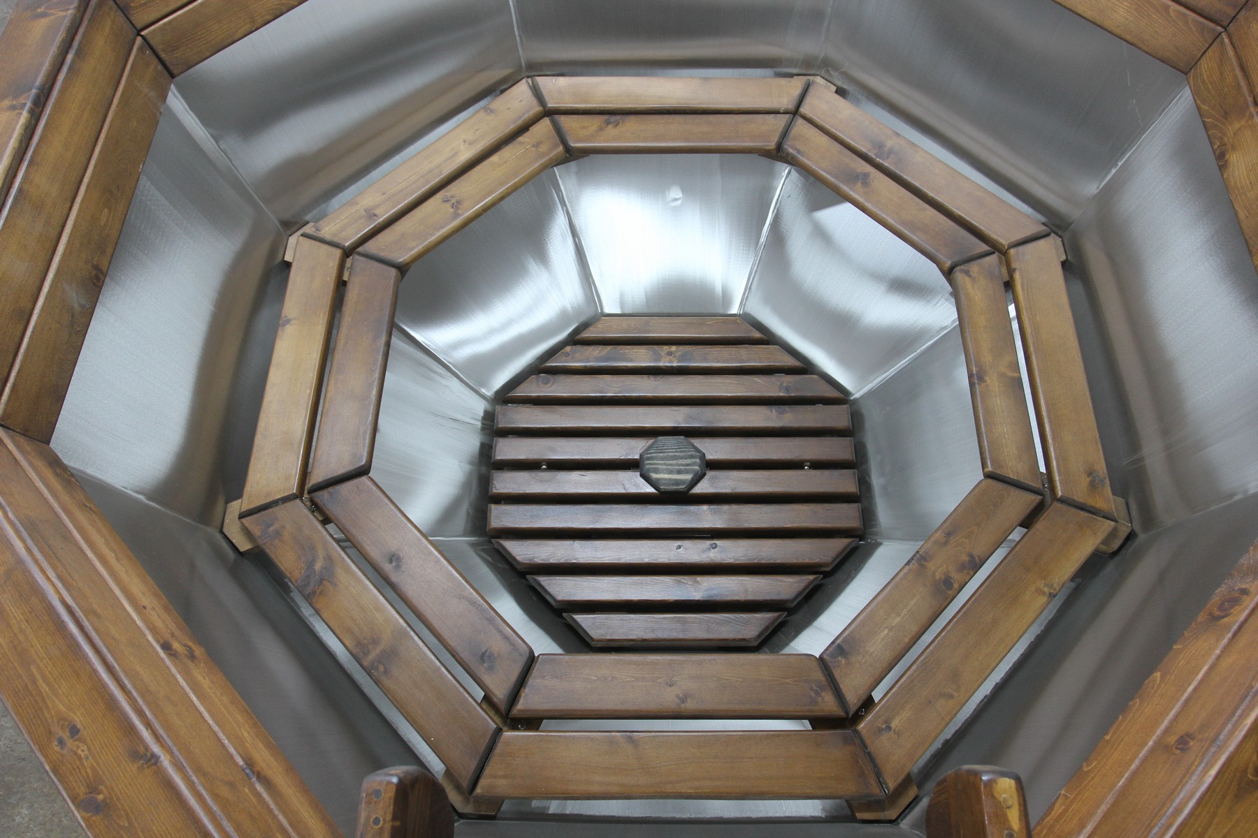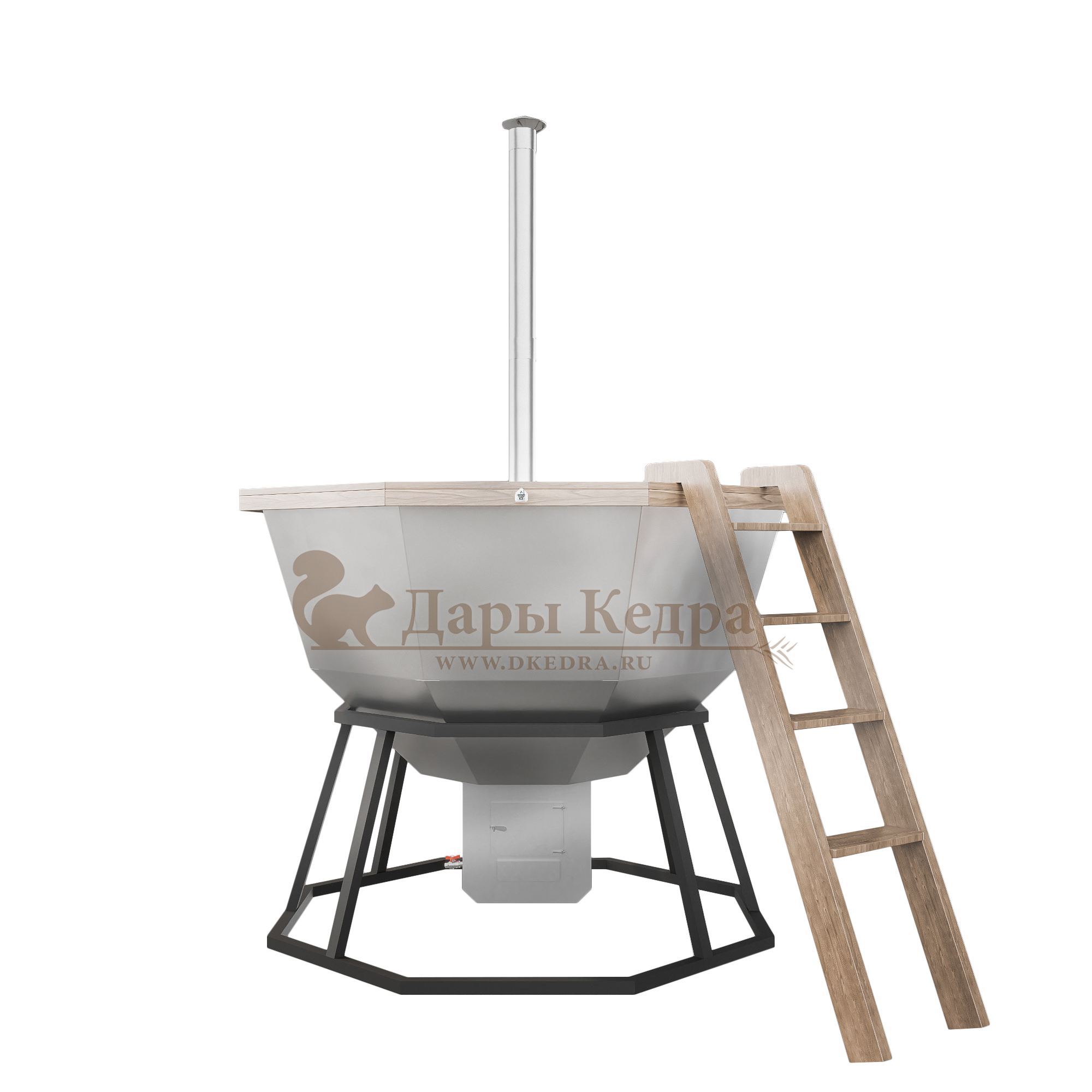 Банный чан из нержавеющей стали Ø-2000 на подставке с приварной печью с водяной рубашкой