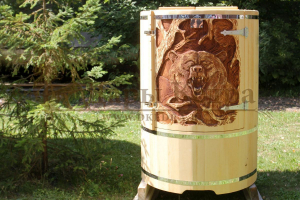 Художественное оформление на лицевой части, сбоку или на всей площади кедровой бочки по вашему эскизу.