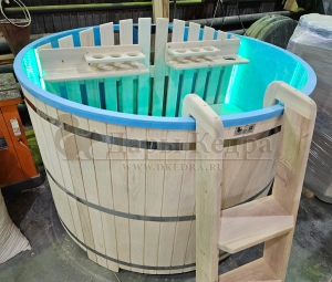 Эффектная подсветка, посредством встроенной, влагозащищённой светодиодной ленты класса IP68. Идеально подходит для круглых купелей. Источник света скрыт от глаз, яркость освещения и цвет можно менять с пульта на расстоянии до 5 метров. Также есть автоматический режим плавной смены цветов, похожий на северное сияние. Хотите удивить близких и друзей? Тогда это ваш вариант!