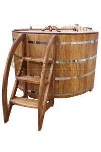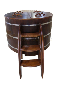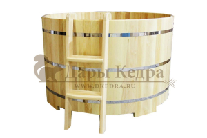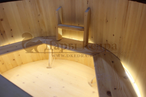 Это герметичная емкость для воды из кедра, которая предназначена для отдыха и охлаждения тела после процедур парения. Благодаря круглой форме, купель хорошо впишется в любое помещение. Так же подойдет для установки на открытом воздухе. Для удобства пользования оснащена лавочками, приставной и внутренней лестницей из кедра. За счет стяжных болтов обручи из нержавеющей стали плотно прилегают к кедровой купели. Это позволяет равномерно распределять нагрузку воды и сохранить форму изделия в период эксплуатации. При правильном уходе круглая купель для бани не рассыхается и не подвергается гниению.