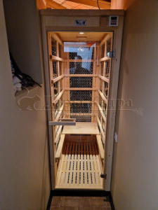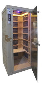 Это специально оборудованная кабина из липы для прогрева тела человека сухим теплом. Воздух в таких парных не нагревается. Инфракрасные лучи воздействуют на тело, равномерно прогревая мышцы, суставы и органы. Карбоновые излучатели, встроенные в стены кабины, обладают мягким прогревом, что полностью исключает возможность ожога. Работает кабина за счет электричества. Компактная одноместная инфракрасная сауна с карбоновыми излучателями подойдет как для домашнего использования, так и для коммерции.