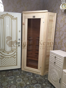 Это специально оборудованная кедровая кабина для прогрева тела человека сухим теплом. Воздух в таких парных не нагревается. Инфракрасные лучи воздействуют на тело, равномерно прогревая мышцы, суставы и органы. Керамические излучатели похожи на лампы, имеют высокую температуру нагрева, поэтому защищены противоожоговыми решетками. Тело человека в таких саунах нагревается интенсивнее. Работает кабина за счет электричества. Установка сауны в угол, позволяет рационально использовать пространство помещения. Подходит как для домашнего использования, так и для коммерции.