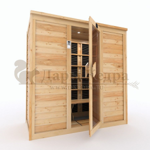 Это специально оборудованная кедровая кабина для прогрева тела человека сухим теплом. Воздух в таких парных не нагревается. Инфракрасные лучи воздействуют на тело, равномерно прогревая мышцы, суставы и органы. Карбоновые излучатели, встроенные в стены кабины, обладают мягким прогревом, что полностью исключает возможность ожога. Работает кабина за счет электричества. Инфракрасная сауна с карбоновыми излучателями подойдет как для домашнего использования, так и для коммерции.