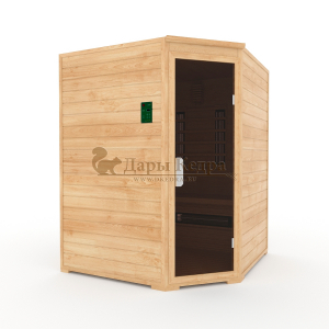 Это специально оборудованная кедровая кабина для прогрева тела человека сухим теплом. Воздух в таких парных не нагревается. Инфракрасные лучи воздействуют на тело, равномерно прогревая мышцы, суставы и органы. Керамические излучатели похожи на лампы, имеют высокую температуру нагрева, поэтому защищены противоожоговыми решетками. Тело человека в таких саунах нагревается интенсивнее. Работает кабина за счет электричества. Установка сауны в угол, позволяет рационально использовать пространство помещения. Подходит как для домашнего использования, так и для коммерции.